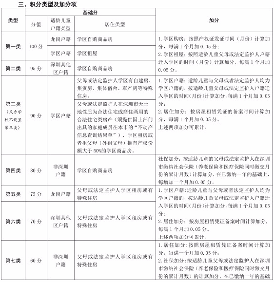 龍崗區(qū)2022年小學(xué)一年級學(xué)位申請積分類型及加分項(xiàng)有哪些?