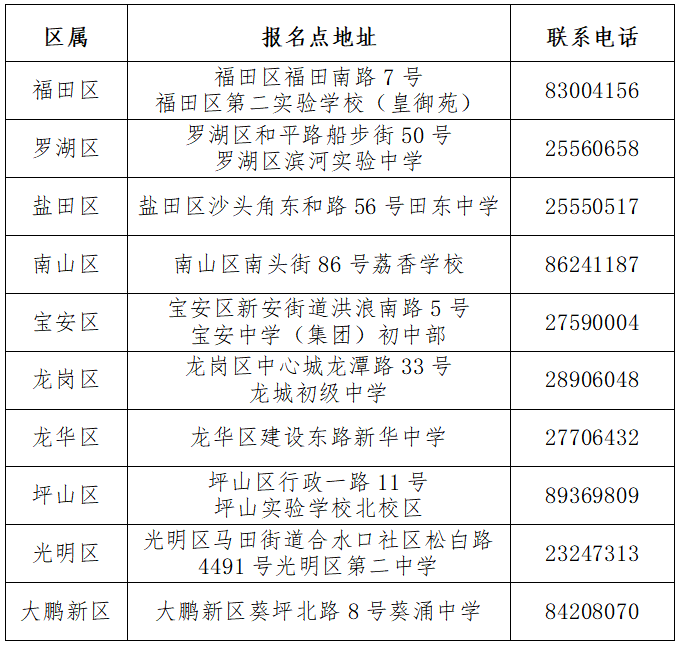 龍崗區(qū)教育局:89551925龍華區(qū)教育局:23779445坪山區(qū)教育局:84622632