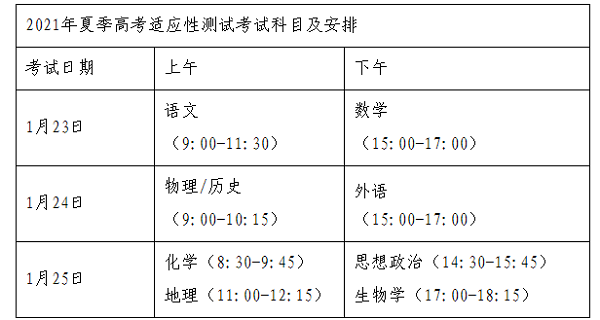 適應(yīng)性測(cè)試各科目具體考試時(shí)間及安排如下: