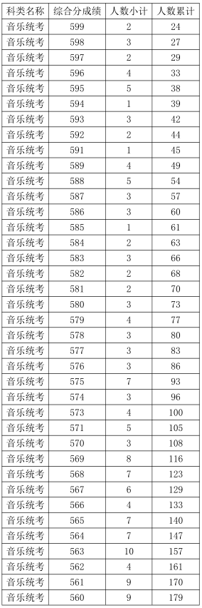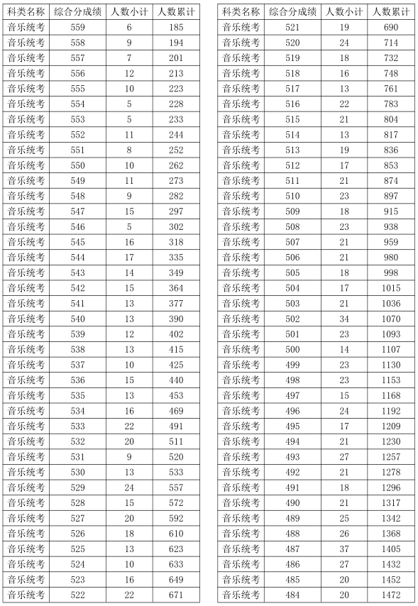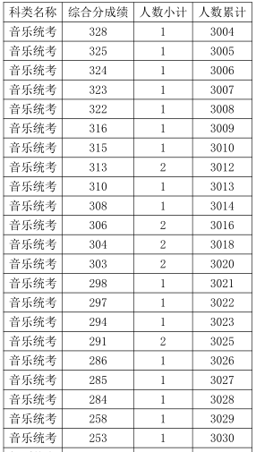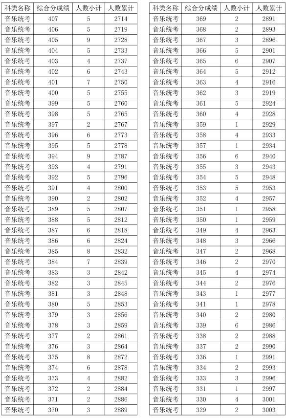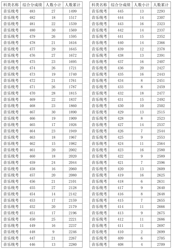 2021年浙江高考藝術(shù)類(lèi)音樂(lè)統(tǒng)考綜合分分段表