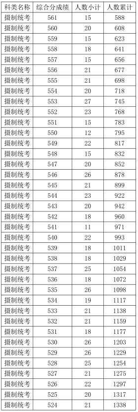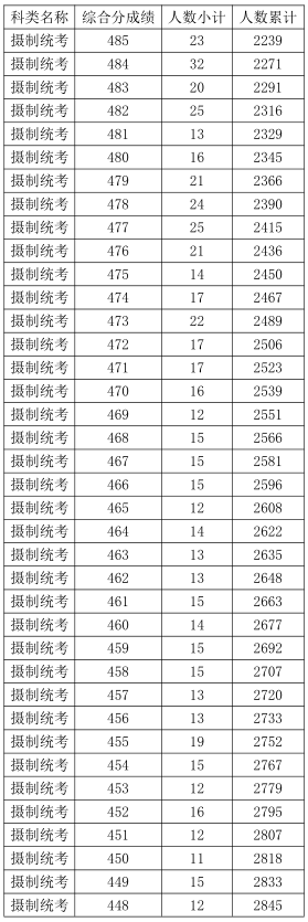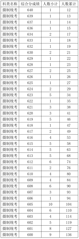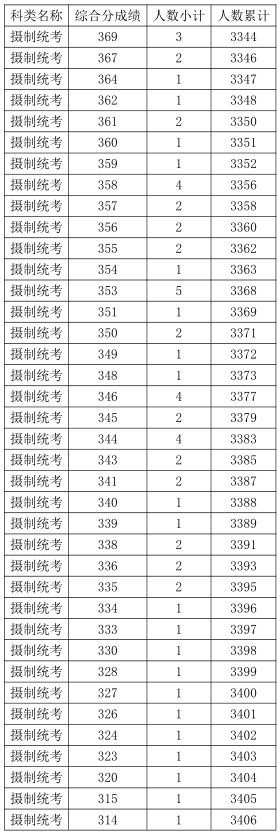 2021年浙江高考藝術類影視統(tǒng)考綜合分分段表