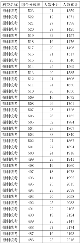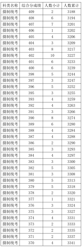 2021年浙江高考藝術類攝制統(tǒng)考綜合分分段表