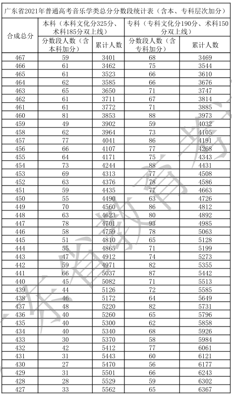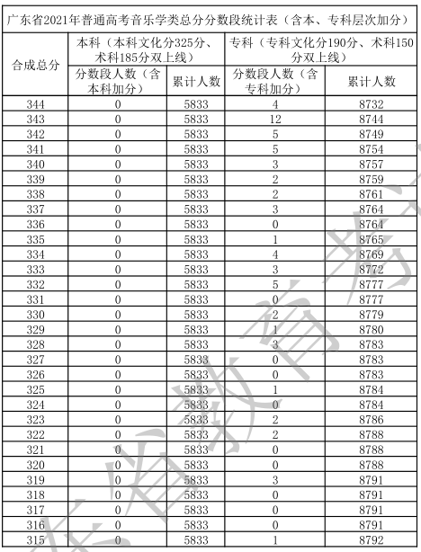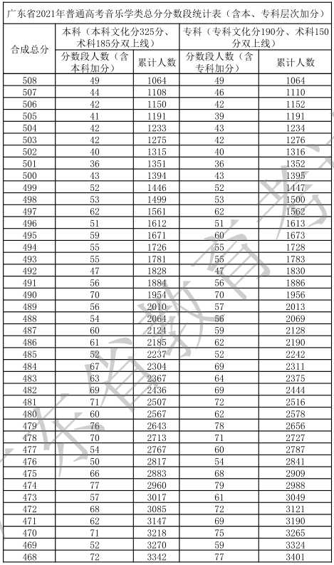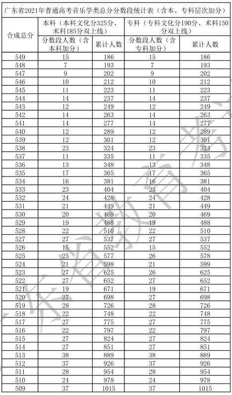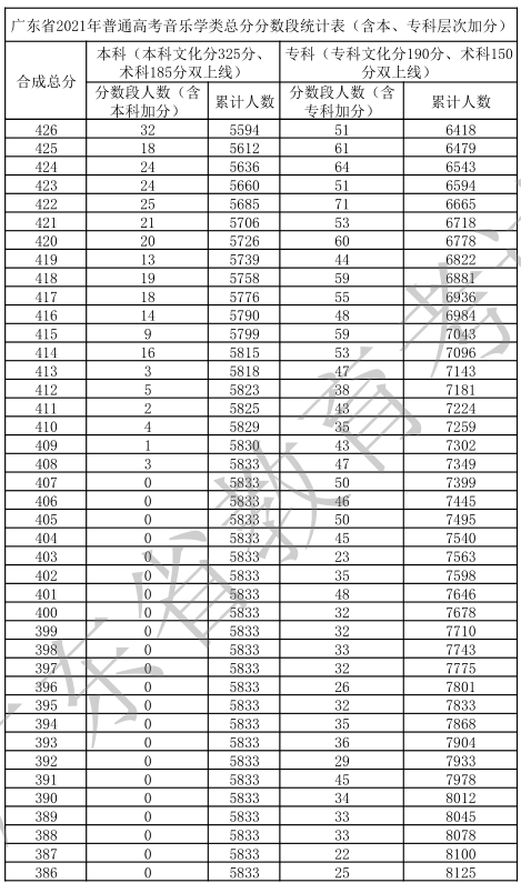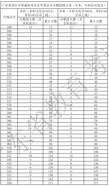 廣東省2021年高考一分一段統(tǒng)計(jì)表(音樂學(xué)類)