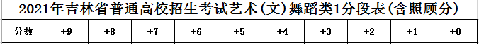 2021年吉林省高考藝術(shù)(文)舞蹈類(lèi)綜合成績(jī)一分段表