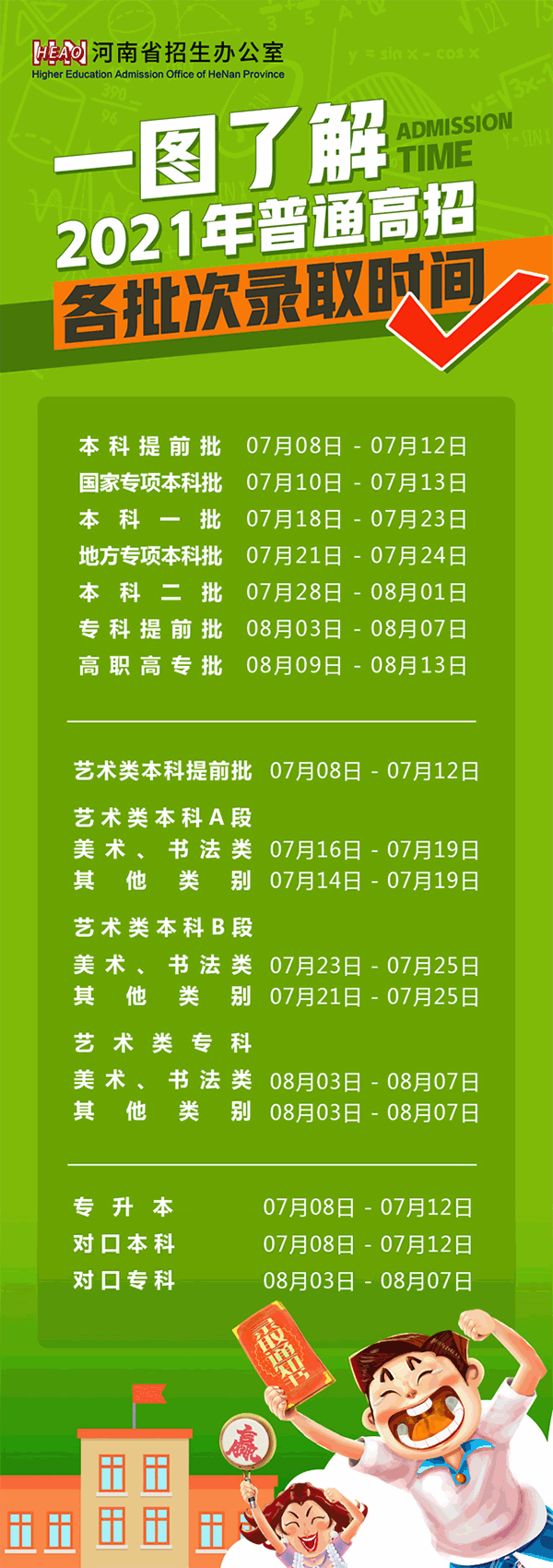 2021年河南普通高招各批次錄取時間