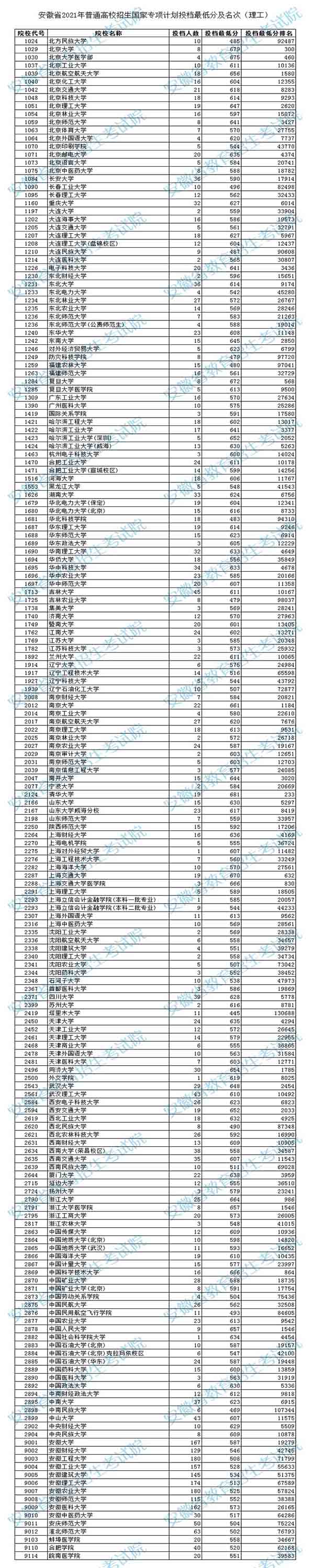 安徽省2021年普通高校招生國(guó)家專項(xiàng)計(jì)劃投檔最低分及名次(理