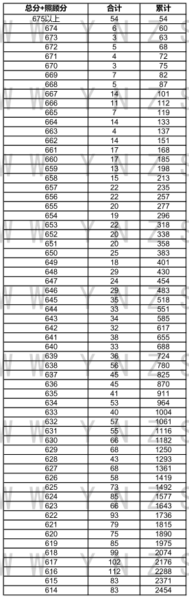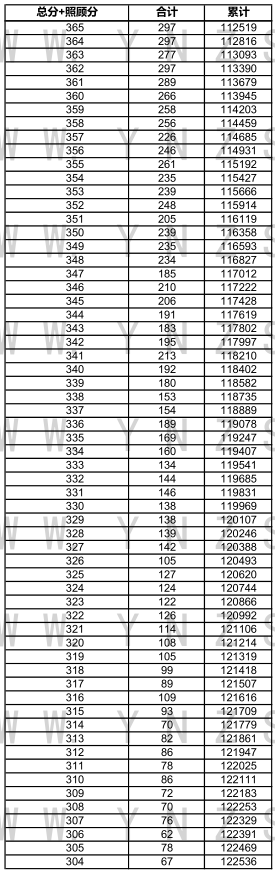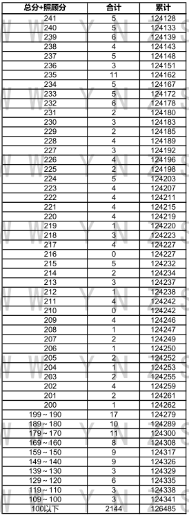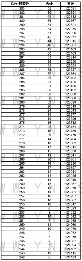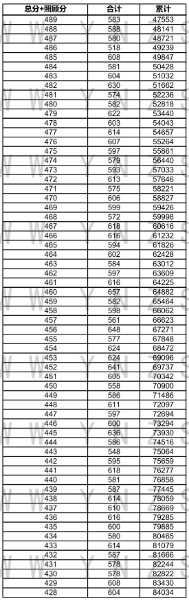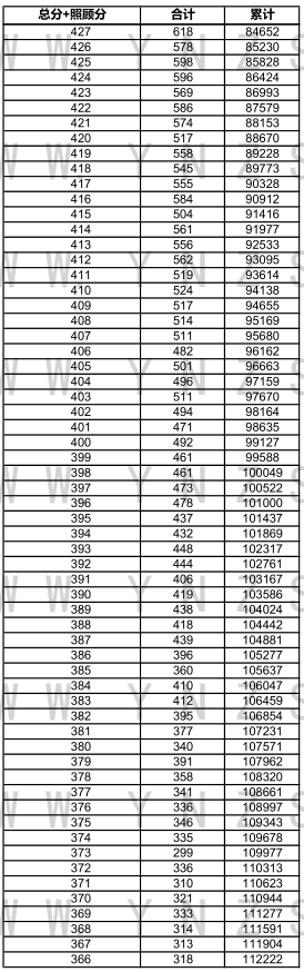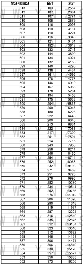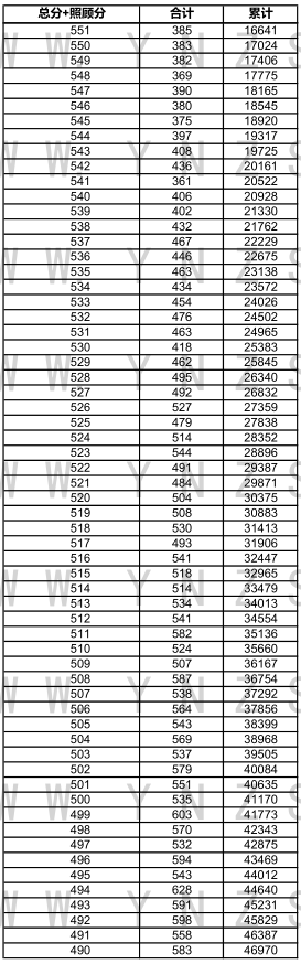 2021年云南省高考文科成績分數(shù)段統(tǒng)計表