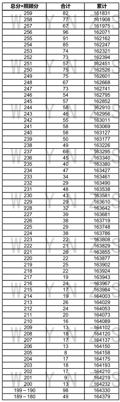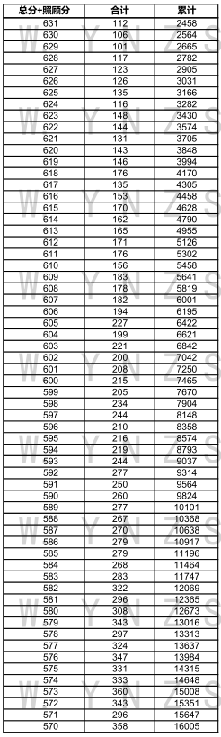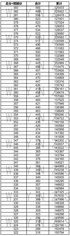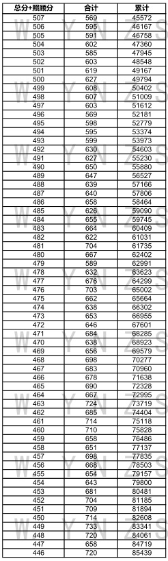 2021年云南省高考理科成績分數段統(tǒng)計表
