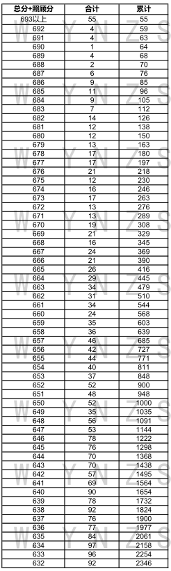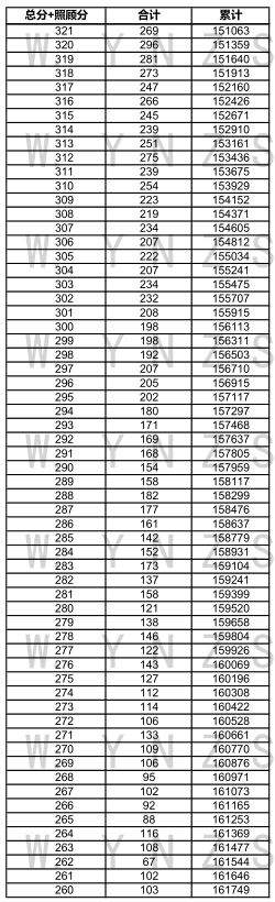 2021年云南省高考文科成績分數段統(tǒng)計表