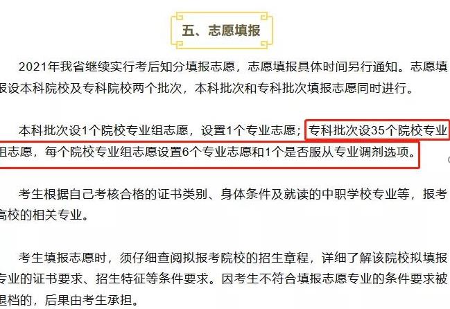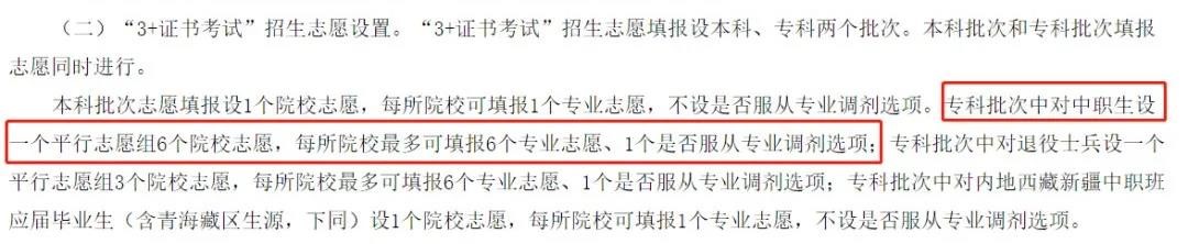 2021年“3 證書”志愿設(shè)置,圖片來源省考試院文件