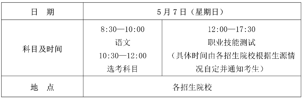 2023年5月15日前,各招生院校須將考生的職業(yè)技能測試成績上傳至報名系統,5月26日前由省考試局統一向考生公布成績。