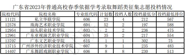 廣東省2023年普通高校春季依據(jù)學(xué)考錄取舞蹈類征集志愿投檔情況