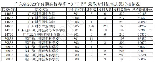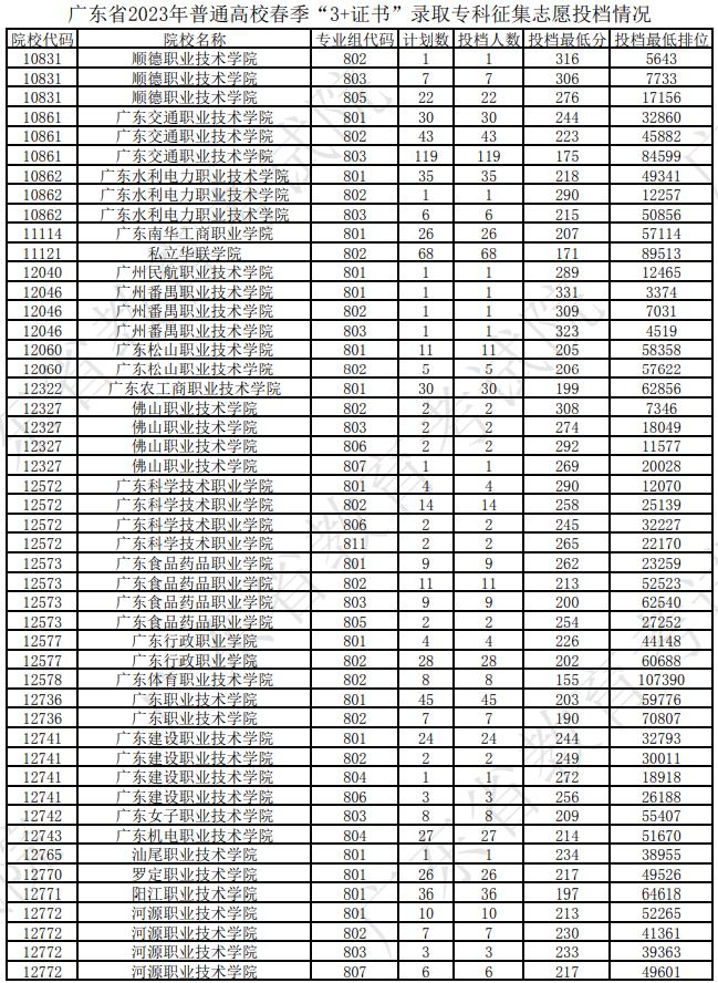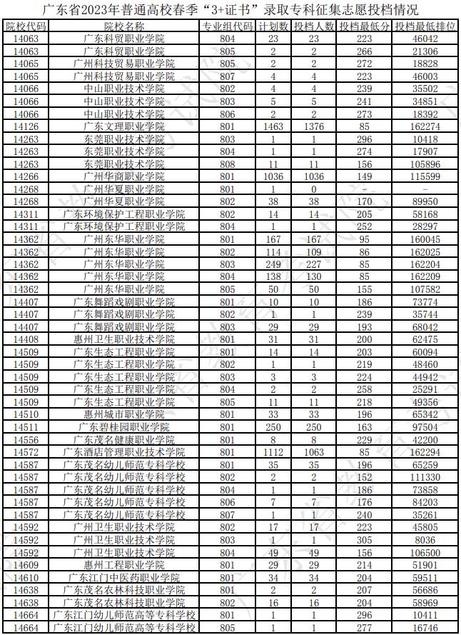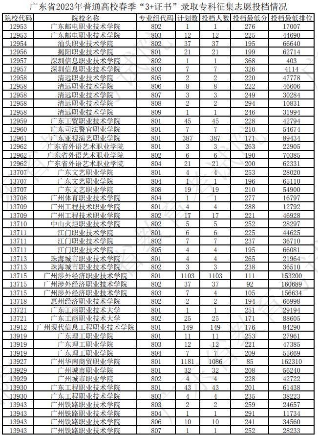 廣東省2023年普通高校春季“3+證書(shū)”錄取??普骷驹竿稒n情況