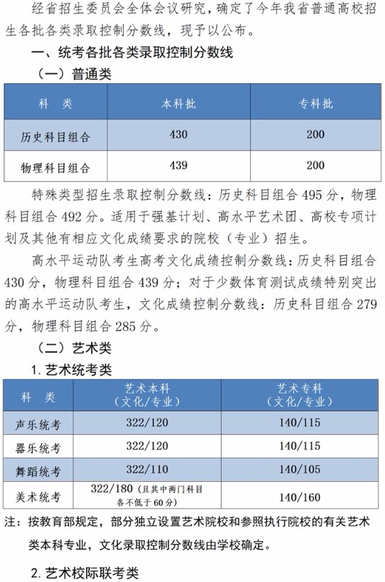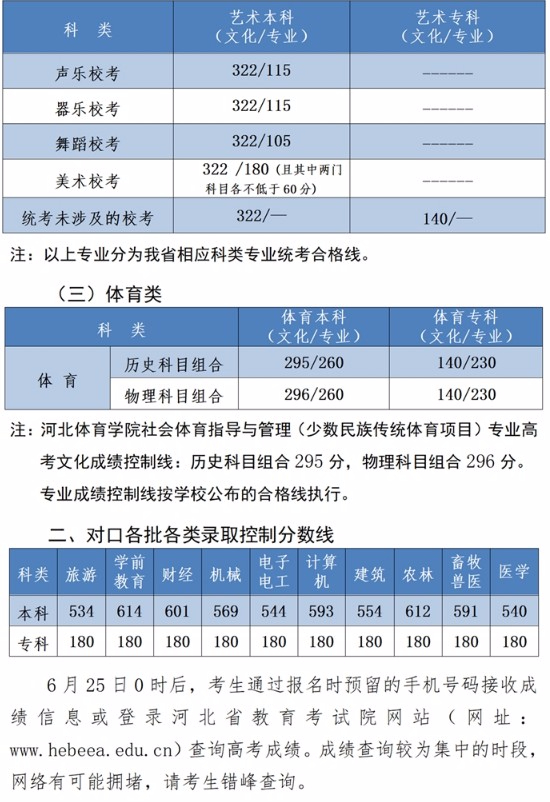 2023年河北省普通高校招生各批各類錄取控制分數線