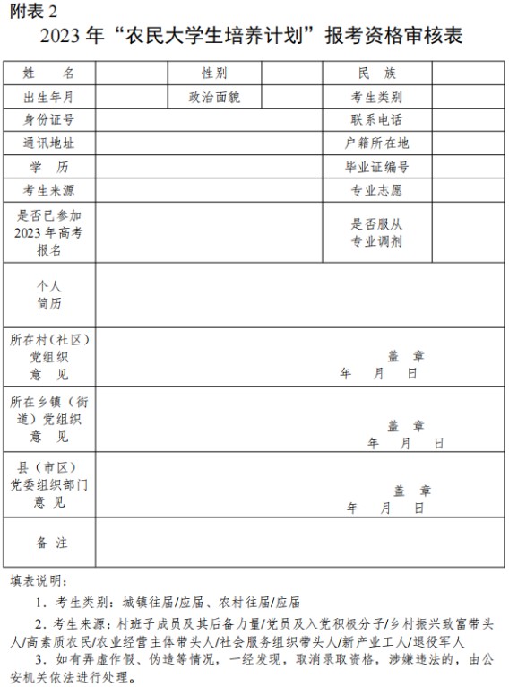 2.2023年 “農(nóng)民大學(xué)生培養(yǎng)計(jì)劃”報(bào)考資格審核表(點(diǎn)擊下載)