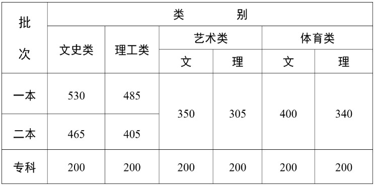 云南省2023年普通高校招生錄取最低控制分?jǐn)?shù)線