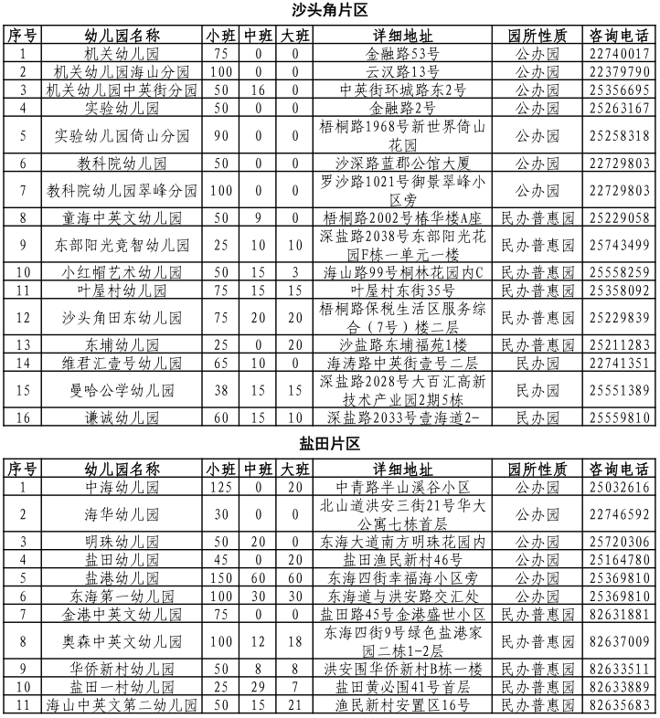 鹽田區(qū)2021年秋季學(xué)期幼兒園招生人數(shù)