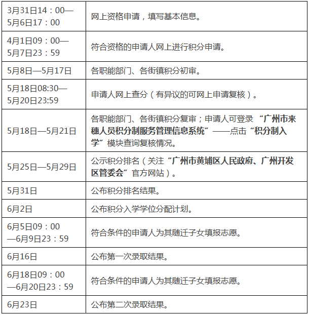 3.黃埔區(qū)2021年來穗人員隨遷子女積分制入學(xué)工作時間安排表