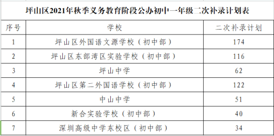 坪山區(qū)2021年秋季義務(wù)教育階段公辦初一招生二次補(bǔ)錄報名公告