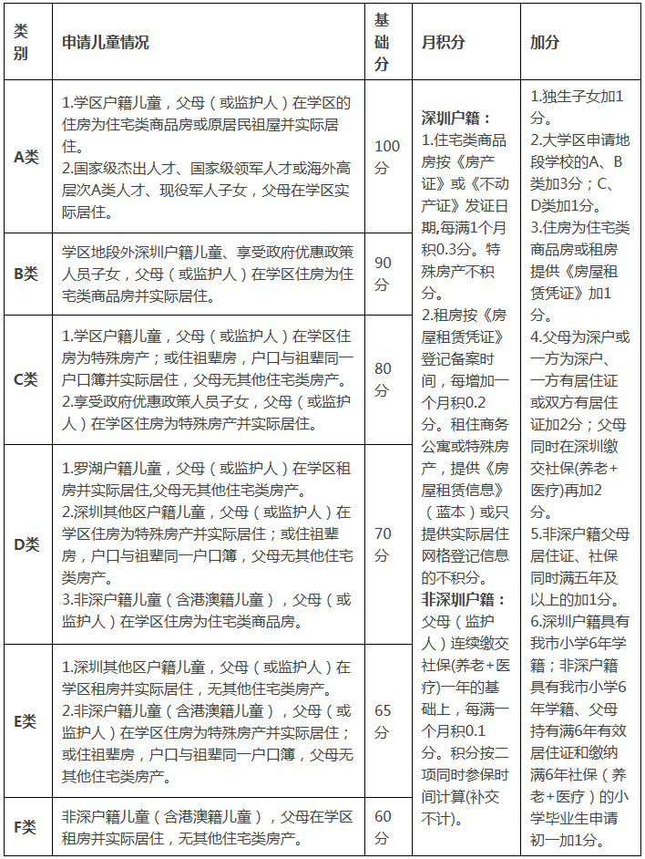 4.同分規(guī)則:①同一類別,戶籍優(yōu)先。按羅湖戶籍-深戶-非深戶籍順序。②戶籍相同,購房優(yōu)先。按購房-租房順序。③住房相同,居住時間優(yōu)先;居住時間相同,社保優(yōu)先。