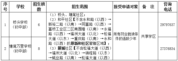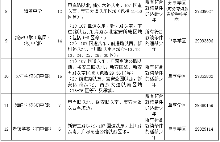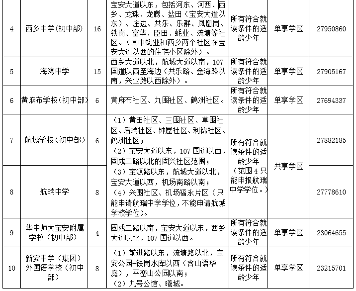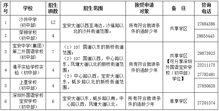 寶安區(qū)2021年公辦學(xué)校初一招生計劃及招生范圍
