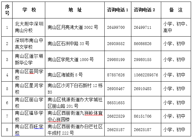 公辦學校招生咨詢熱線:0755-26486070