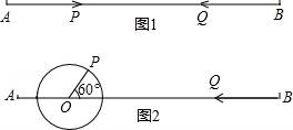 (3)如圖2,AO=4cm,PO=2cm,∠POB=60°,點(diǎn)P繞著點(diǎn)O以60度/秒的速度逆時(shí)針旋轉(zhuǎn)一周停止,同時(shí)點(diǎn)Q沿直線BA自B點(diǎn)向A點(diǎn)運(yùn)動(dòng),假若P、Q兩點(diǎn)能相遇,直接寫出點(diǎn)Q運(yùn)動(dòng)的速度.