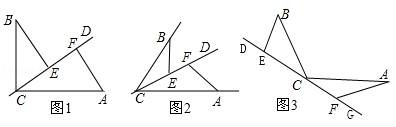 (2)如圖3,若直線CD經(jīng)過∠BCA的外部,∠α=∠BCA,請?zhí)岢?/span>EF,BE,AF三條線段數(shù)量關(guān)系的合理猜想:(不要求證明).