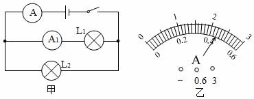 12.如圖甲所示,開關(guān)閉合后,兩個(gè)電流表指針偏轉(zhuǎn)均為(乙)圖所示,則通過L1和L2的電流分別為( ?。?/span>