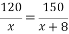 6.(3分)甲、乙二人做某種機(jī)械零件,已知每小時(shí)甲比乙少做8個(gè),甲做120個(gè)所用的時(shí)間與乙做150個(gè)所用的時(shí)間相等,設(shè)甲每小時(shí)做x個(gè)零件,下列方程正確的是( ?。?/span>
