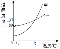C.t2℃時,溶液Ⅱ中含乙37g