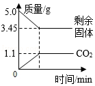 (2)欲測定某NaHCO3固體樣品(只含Na2CO3雜質(zhì)且分布均勻)中NaHCO3的質(zhì)量分?jǐn)?shù),將5.0g該樣品加熱至質(zhì)量不再改變,測得剩余固體的質(zhì)量、生成CO2的質(zhì)量隨時間變化如圖所示。