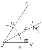 MN的長為半徑畫弧,兩弧交于點P,作射線BP交AC于點D.則下列說法中不正確的是( )