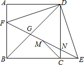 12.(3分)如圖,正方形ABCD中,F為AB上一點,E是BC延長線上一點,且AF=EC,連接EF,DE,DF,M是FE中點,連接MC,設(shè)FE與DC相交于點N.則4個結(jié)論:①DE=DF;②∠CME=∠CDE;③DG2=GN?GE;④若BF=2,則MC=