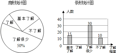 (1)接受問卷調(diào)查的學(xué)生共有人,扇形統(tǒng)計(jì)圖中“基本了解”部分所對(duì)應(yīng)扇形的圓心角為;