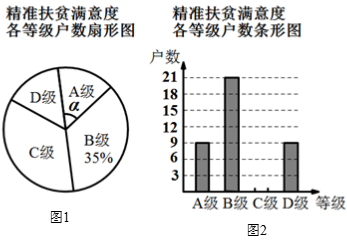24.為了解某縣建檔立卡貧困戶對(duì)精準(zhǔn)扶貧政策落實(shí)的滿意度,現(xiàn)從全縣建檔立卡貧困戶中隨機(jī)抽取了部分貧困戶進(jìn)行了調(diào)查(把調(diào)查結(jié)果分為四個(gè)等級(jí):A級(jí):非常滿意;B級(jí):滿意;C級(jí):基本滿意;D級(jí):不滿意),并將調(diào)查結(jié)果繪制成如下兩幅不完整的統(tǒng)計(jì)圖.請(qǐng)根據(jù)統(tǒng)計(jì)圖中的信息解決下列問題:
