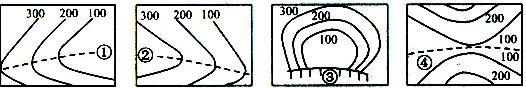上圖四地中,可能發(fā)育河流的是 ( )