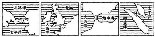 1.圖中①~④表示的海峽依次是 ( )
