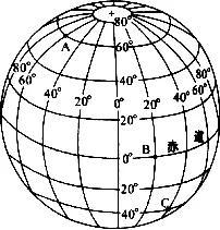 (2)在圖中A、B、C三點中,位于南、北半球分界線上的是 點,位于西半球的是 點。