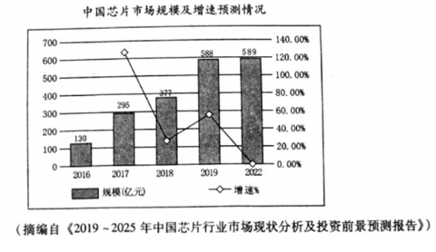A.2016年起,中國芯片市場規(guī)模逐年大幅増長。