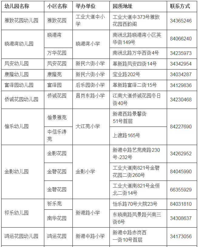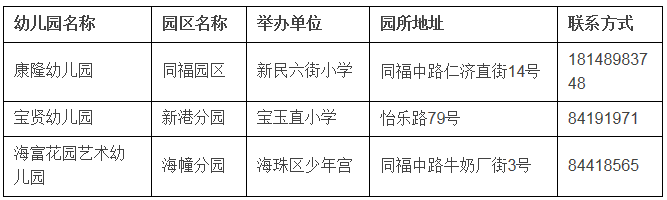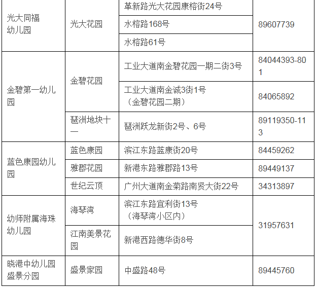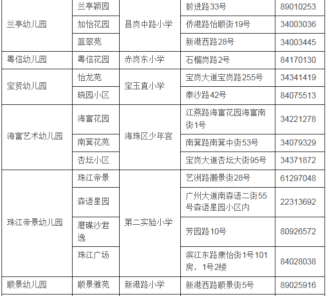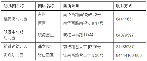 2021年海珠區(qū)教育系統(tǒng)公辦幼兒園信息一覽表
