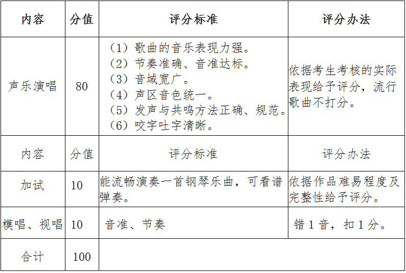 聲樂專項(xiàng)評(píng)分標(biāo)準(zhǔn):