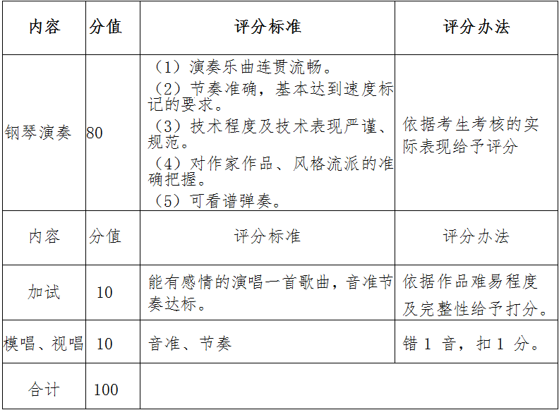 鋼琴專項(xiàng)評(píng)分標(biāo)準(zhǔn)