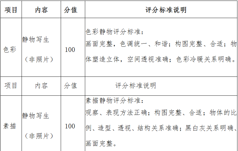 美術(shù)繪畫專項(xiàng)評(píng)分標(biāo)準(zhǔn)