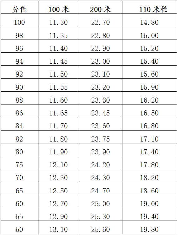體育特長(zhǎng)生田徑項(xiàng)目考核內(nèi)容及評(píng)分標(biāo)準(zhǔn)(手計(jì))