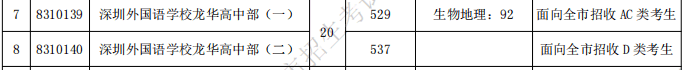 備注: A類指具有深圳戶籍的考生; C類指享受市政府優(yōu)惠政策人員的子女; D類指除A、C類考生外,符合參加統(tǒng)一劃線錄取條件的考生。(非深戶一般屬于這一類)