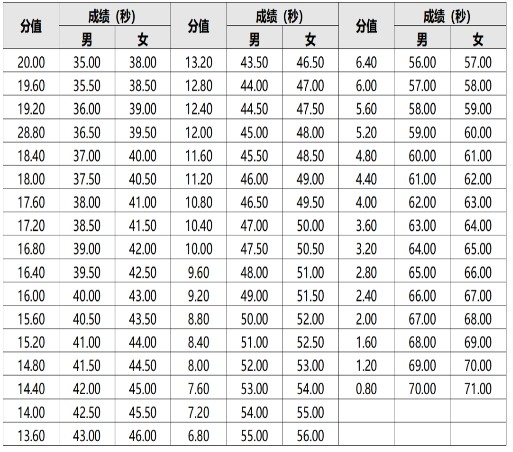 3.體能測試,扇形跑,分值:10分