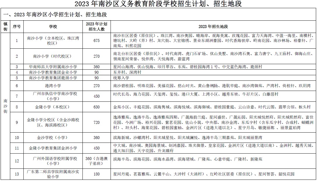 2023 年南沙區(qū)幼升小招生計劃、招生地段