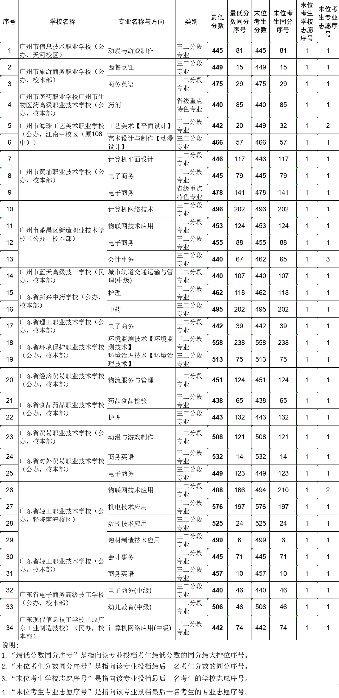 備注:未完成招生計(jì)劃的中職三二分段專業(yè)及省級以上重點(diǎn)特色專業(yè)投檔最低分?jǐn)?shù)為435分(即中職三二分段專業(yè)及省級以上重點(diǎn)特色專業(yè)錄取最低控制分?jǐn)?shù)線)。