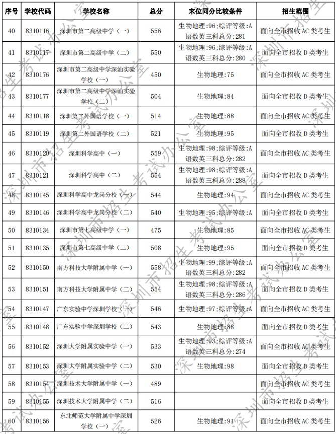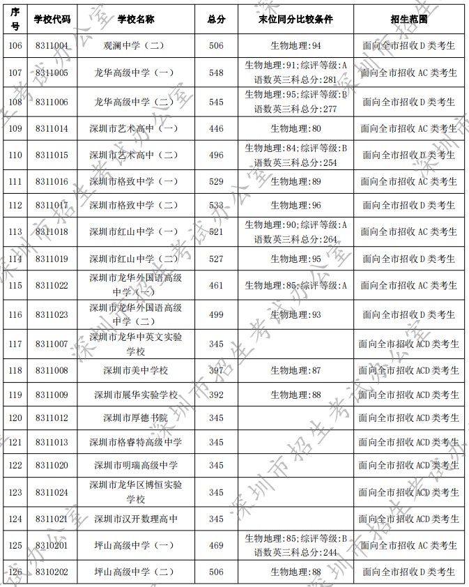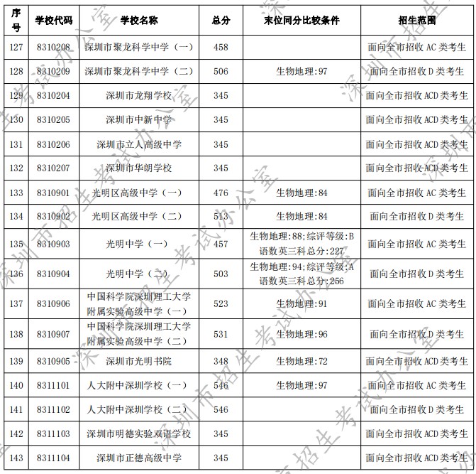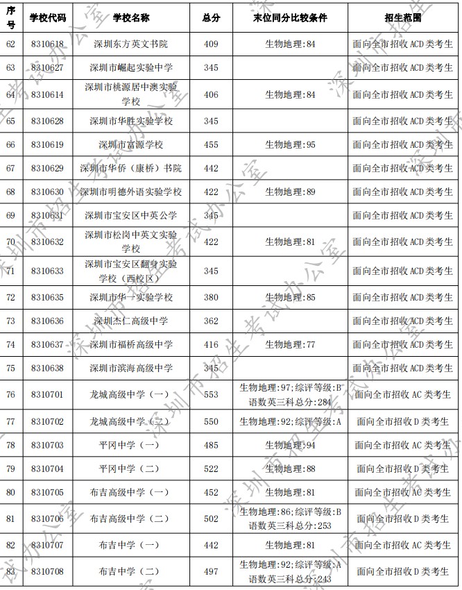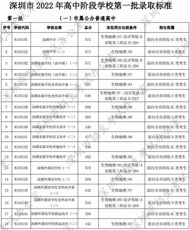 深圳市2022年高中階段學(xué)校第一批錄取標(biāo)準(zhǔn)公布